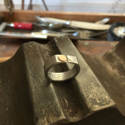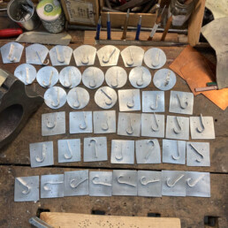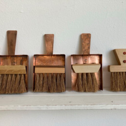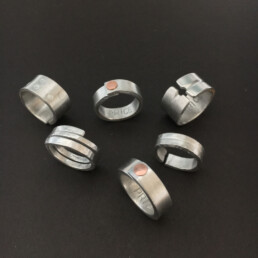 Die Draht Objekte sind eine Studie über Wiederholung und Geduld. Jedes Stück Draht, ob er lang oder kurz ist, wird flach gehämmert. Dieser Prozess dauert Stunden. Die endlosen Facetten sind ein wichtiger Teil des Prozesses. Die Oberflächenbearbeitung der gehämmerten Stücke gibt jedem Objekt eine reiche Tiefe. Die Facetten sind klein aber sie zeigen ein subtiles Muster.