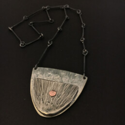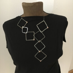 This series was created in 2018. These pieces were inspired by the shape of stones, but instead of leaving the wire grey, I played with color to add a contemporary element.
