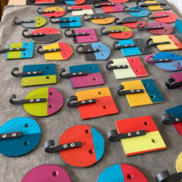 Diese Serie entstand 2018. Zu diesen Stücken haben mich die Formen von Steinen inspiriert. Anstatt sie grau zu belassen habe ich, als zeitgenössisches Element, Farbe ins Spiel gebracht.