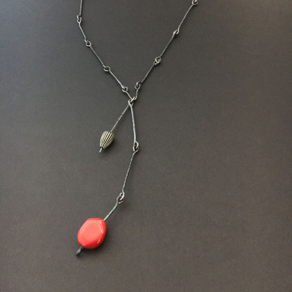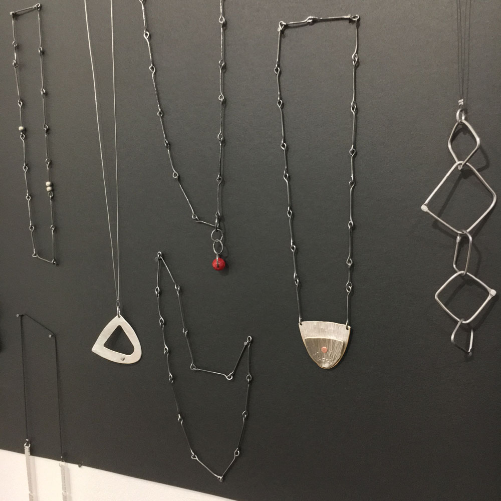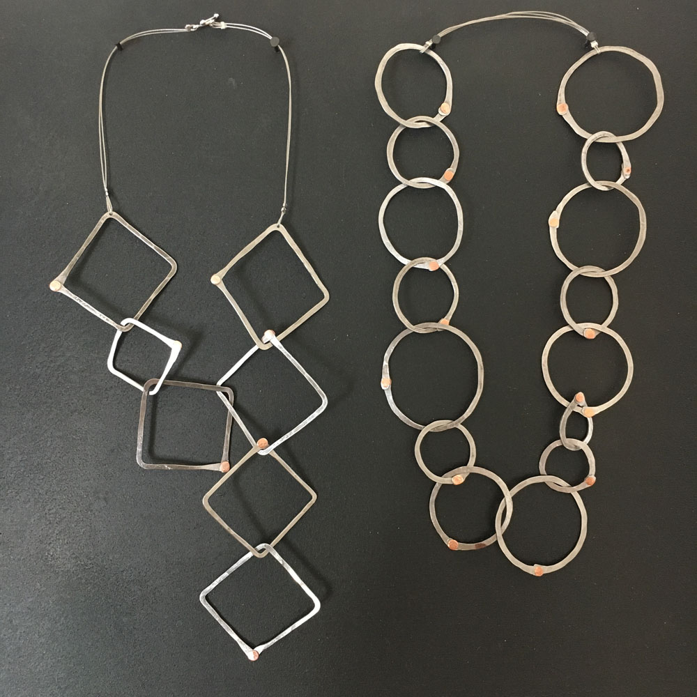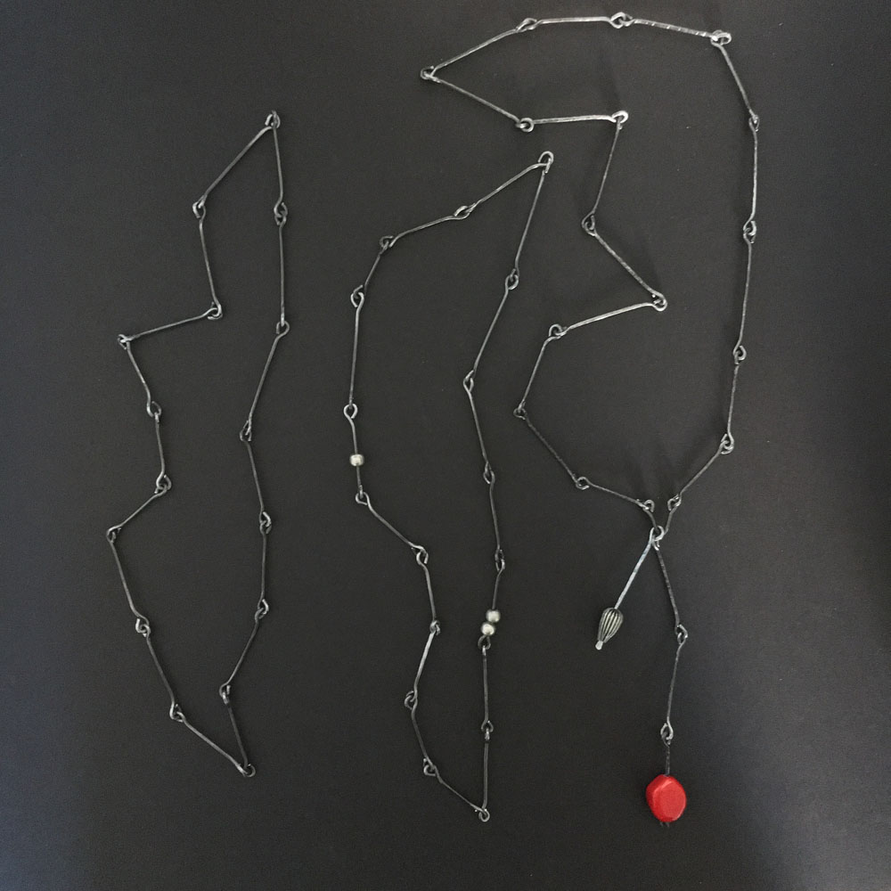 This series was created in 2018. These pieces were inspired by the shape of stones, but instead of leaving the wire grey, I played with color to add a contemporary element.