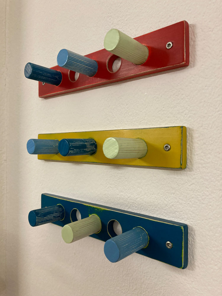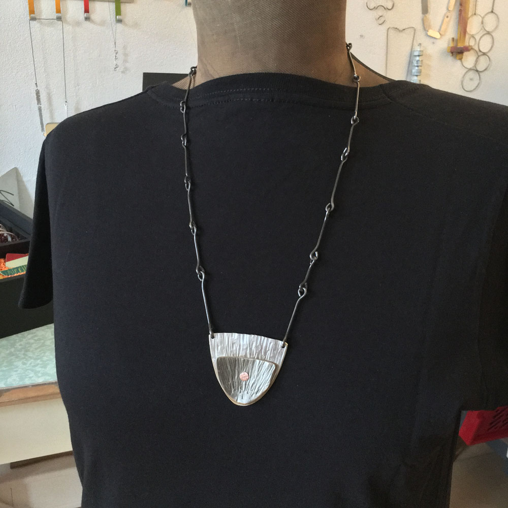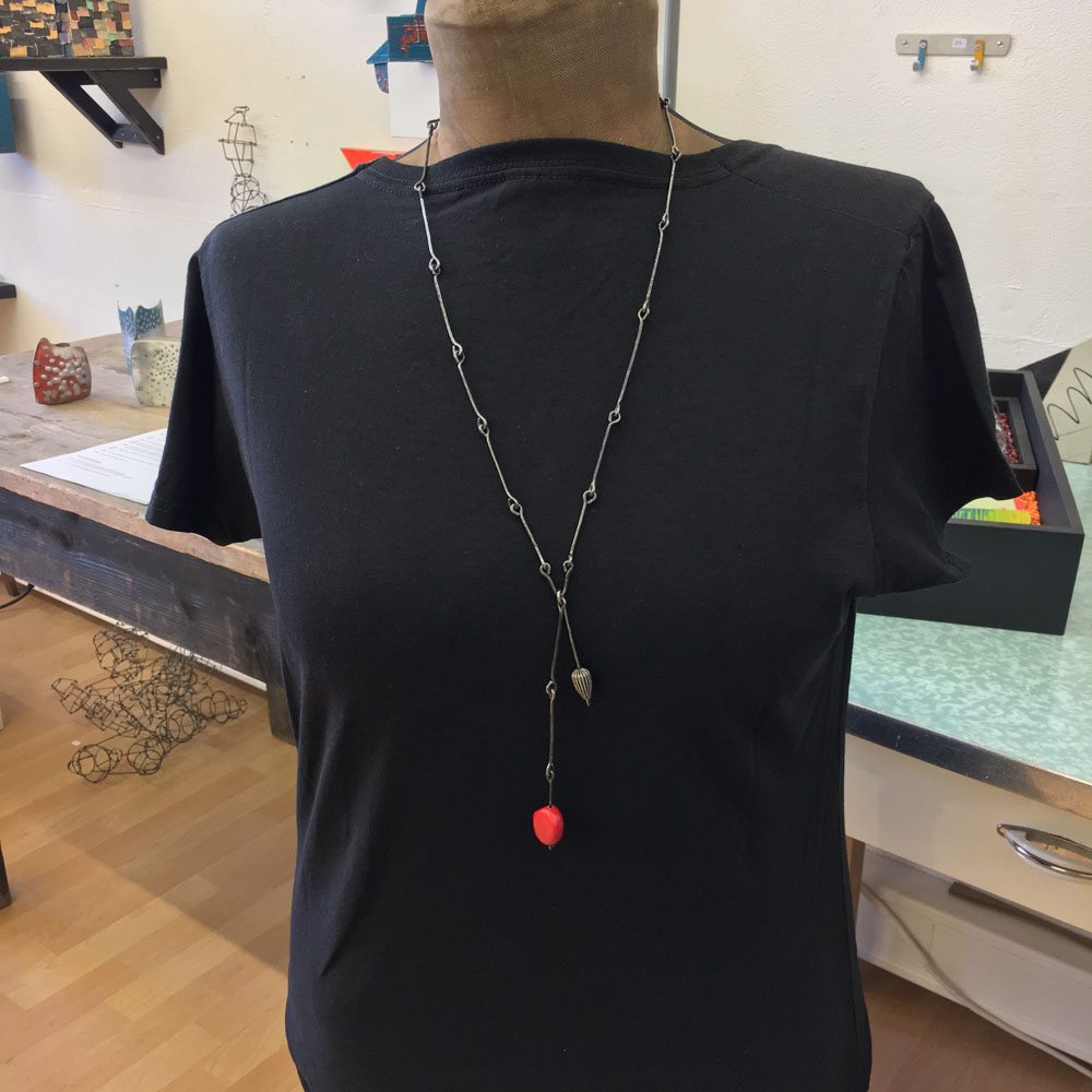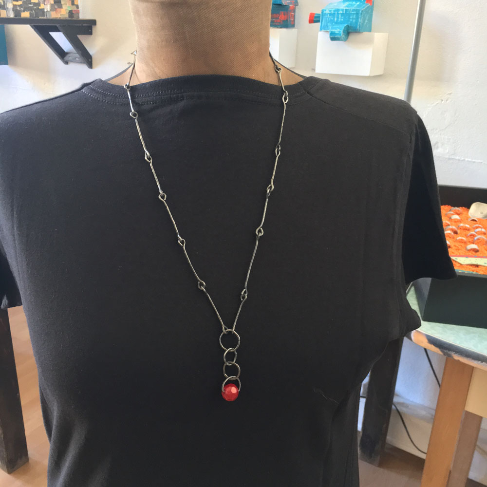 This series was created in 2018. These pieces were inspired by the shape of stones, but instead of leaving the wire grey, I played with color to add a contemporary element.
